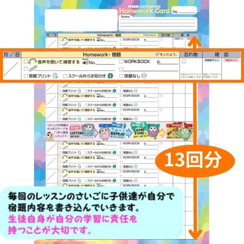 使用テキストに挟んで持参することで 毎週の宿題チェックがスムーズに!