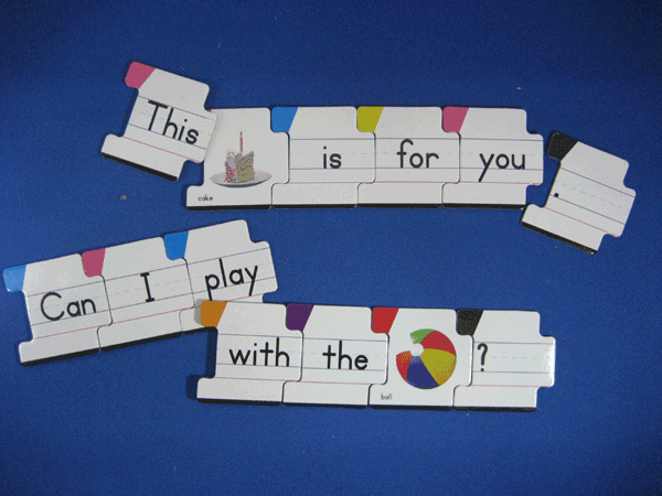 カードを組み合わせて文章を作りましょう。動詞はブルー、形容詞はグリーンなど品詞によって色分けされているのでヒントになります。