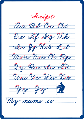 紙製下敷きに、アルファベットが書き順付きで紹介されています。 (表 : ブロック体 / 裏 : 筆記体 256×181mm)