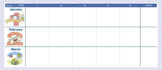 日付を書きこんだり、出席の徴のシールを貼ってもOK!