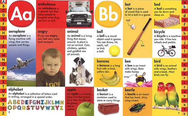 前半のイラストつき英英辞典、後半のテーマごとにカテゴライズされた絵辞典が一緒になった便利な一冊。シンプルな文章と大きな写真が見やすくレイアウトされています。