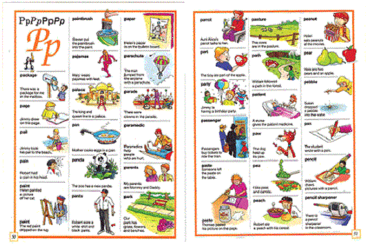 最初に身に付けておきたい1500単語を、アルファベット順にイラストと簡単な例文で学びましょう。巻末には、月、曜日、時計の読み方も紹介されています。