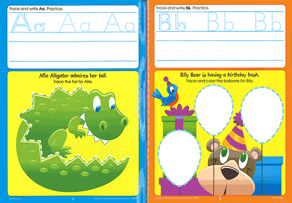 アルファベットの大文字・小文字と単語を書く練習をします。最初は線をなぞって書き、慣れたら自分で書いてみましょう。イラストの中に隠れたアルファベットを探すアクティビティなどがあります。