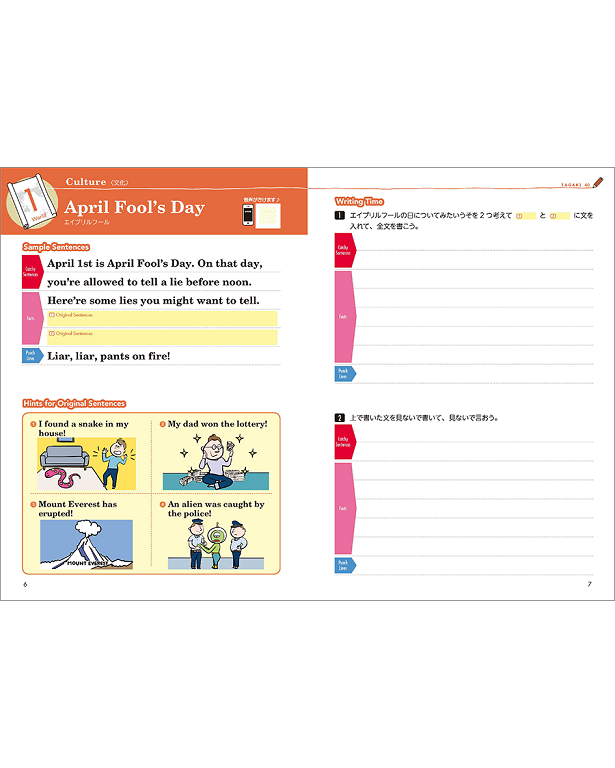 自分で考え、気持ちを整理し、表現する力を身につけるためのライティング教材「多書」シリーズ。 トピックに沿った40語前後の文章を書いてゆきます。10、20、30と違うのは、ちょっと面白いヒントを参考に自分で書くこと。ユーモアは英語に欠かせません。誰かが言ったことをなぞるのではなく、自分の想像性をアピールすること。