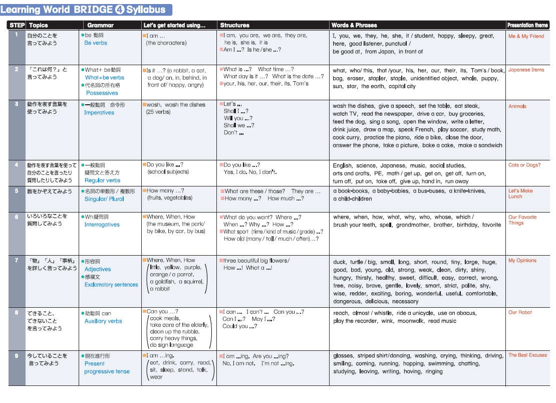 Learning World Book3修了者/幼児から英語教育を受けてきた小学校高学年対象 英検4級レベル