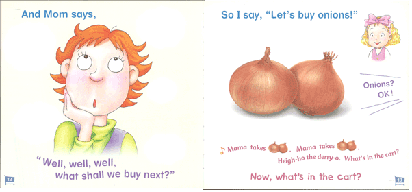 ママにとって毎日の献立を考えるのは大変!いつものように、shopping cartを押しながらママの口癖が始まります。Well, well, well… What shall we buy today?女の子がママにアドバイスをしながら、カートの中に食材を入れていきます。・・・そして今日の夜ご飯はどんなメニュー?