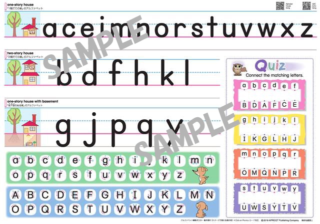 掲示用、練習用の2枚組ポスターのセット(アルファベットの書き順付)。