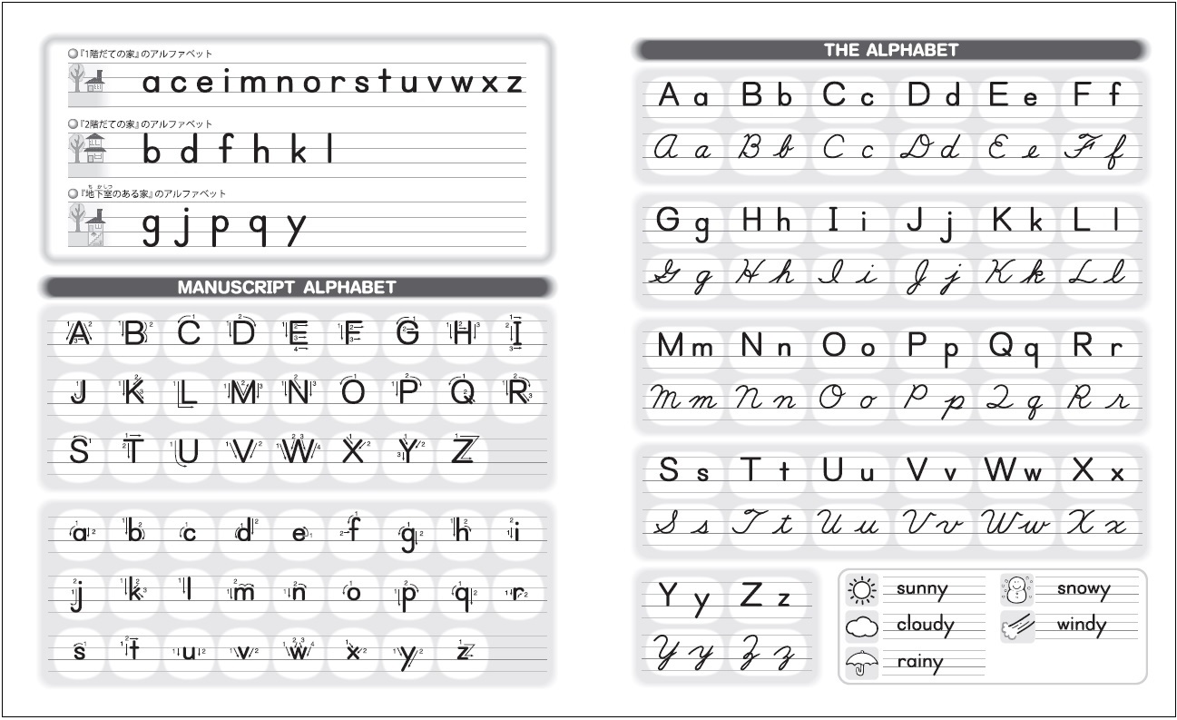 アルファベットの練習、短い語彙を書く練習にお使いください。