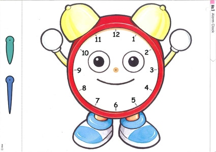 長針、短針をハサミで切りとり、時計の中心に割ピンで長針と短針を留めればできあがり!