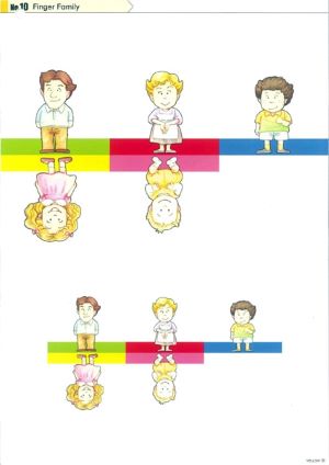 指人形を作ってはめて、Song:Finger Familyに合わせて歌います。