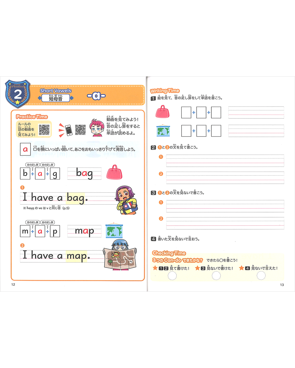 フォニックスのルールと発音を学びます。ルールを学んだあとすぐにやさしい英文を練習することで、確実に身につけましょう。