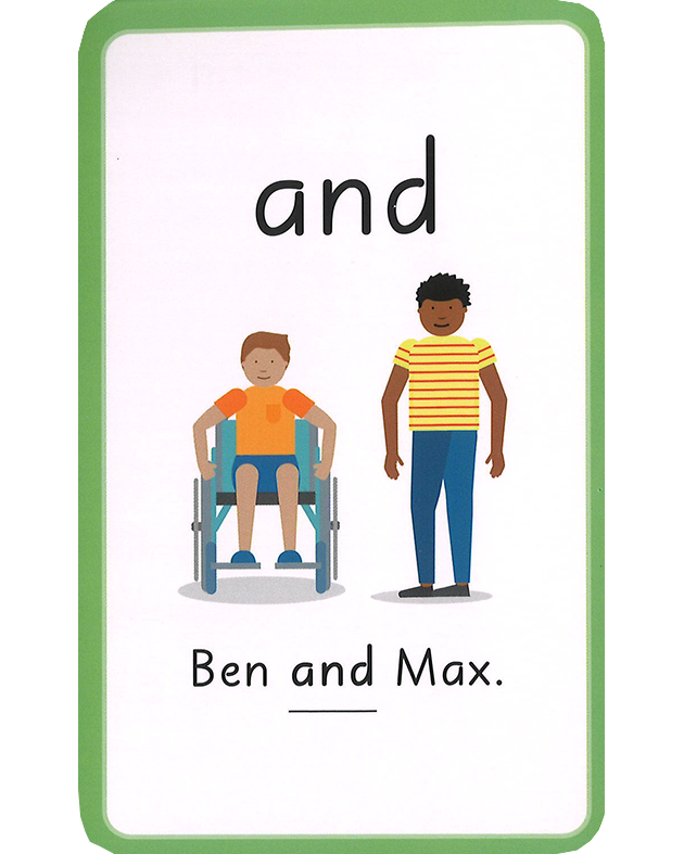 表にはサイトワード、裏にはイラスト付きの例文が印刷されています。