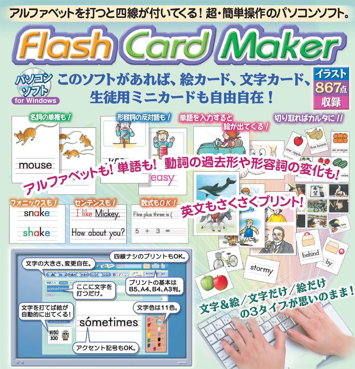 NEW Flash Cards Maker & NEW Penmanship & Check Sheets Pack(Windows対応)